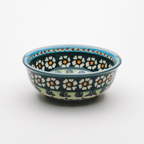 ヴィザ社のデザイナーAdam Jop(アダム・ヨップ)氏によって作られたポーリッシュポタリーの有名な柄です。青系が多いポーリッシュポタリーの中ではちょっと珍しいグリーン系で、「カモミール」がモティーフとなっており、男女を問わない人気を持っています。