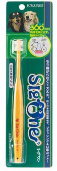 360°型なので、どこからでも磨け、従来の歯ブラシのように、毛の裏面のプラスティック部分が歯や歯ぐきにカチカチ当たることがなくて安心。0.07mmの超極細毛を全周に採用。柔らかい曲線ブラシが、ワンちゃんの歯ぐきも優しくマッサージします。約2万本(従来歯ブラシの20倍)の毛数でブラッシングするので、短時間で口臭や歯周病の原因である汚れやプラークを徐去します。